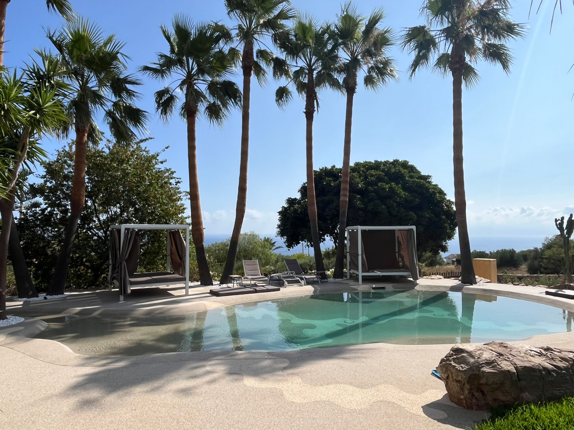 Un’oasi di relax dalle forme organiche e sinuose, incorniciata da palme svettanti e da un panorama mozzafiato, che regala momenti di pura quiete immersi nella bellezza del paesaggio.