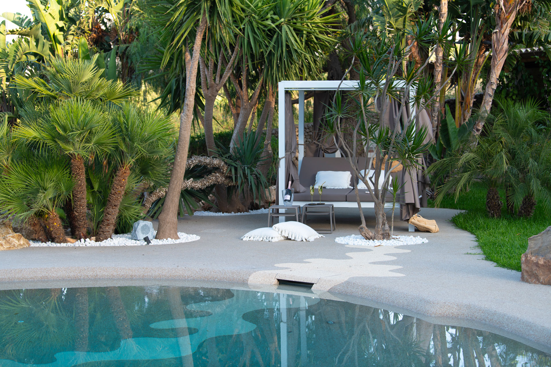 La piscina dispone inoltre di un’area idromassaggio esclusiva, incastonata tra la vegetazione rigogliosa, che assicura privacy e amplifica il senso di benessere e intimità.