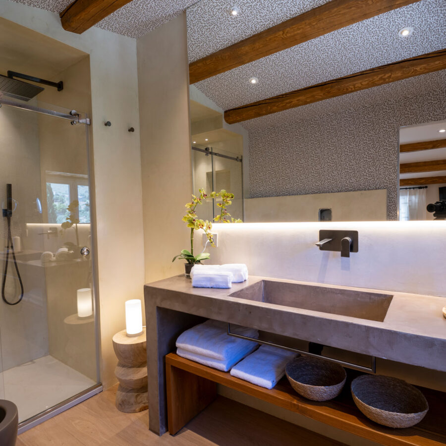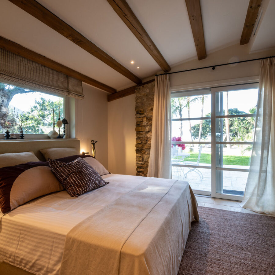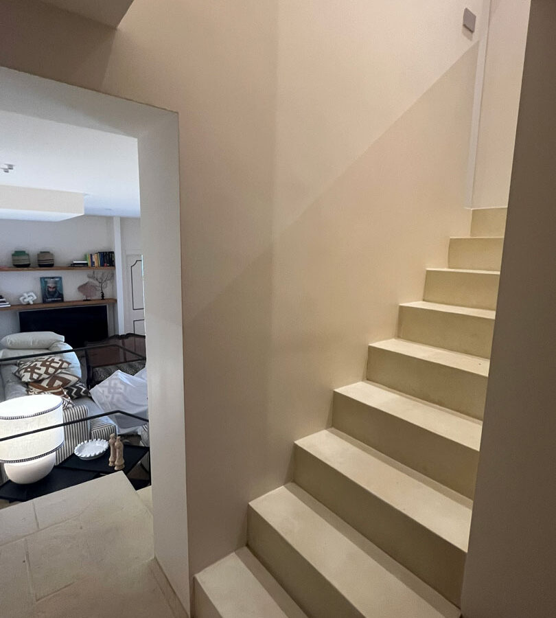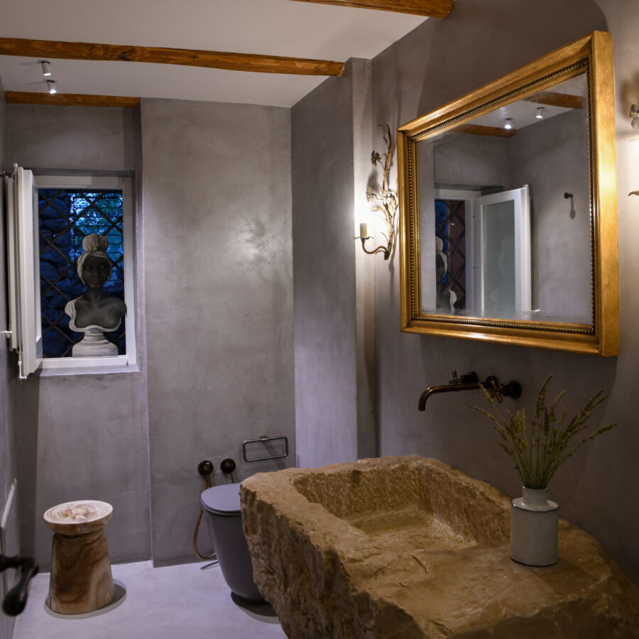 I pavimenti in pietra, i tessuti naturali, le tonalità terrose e il design equilibrato restituiscono un senso di armonia e continuità con il contesto naturale.