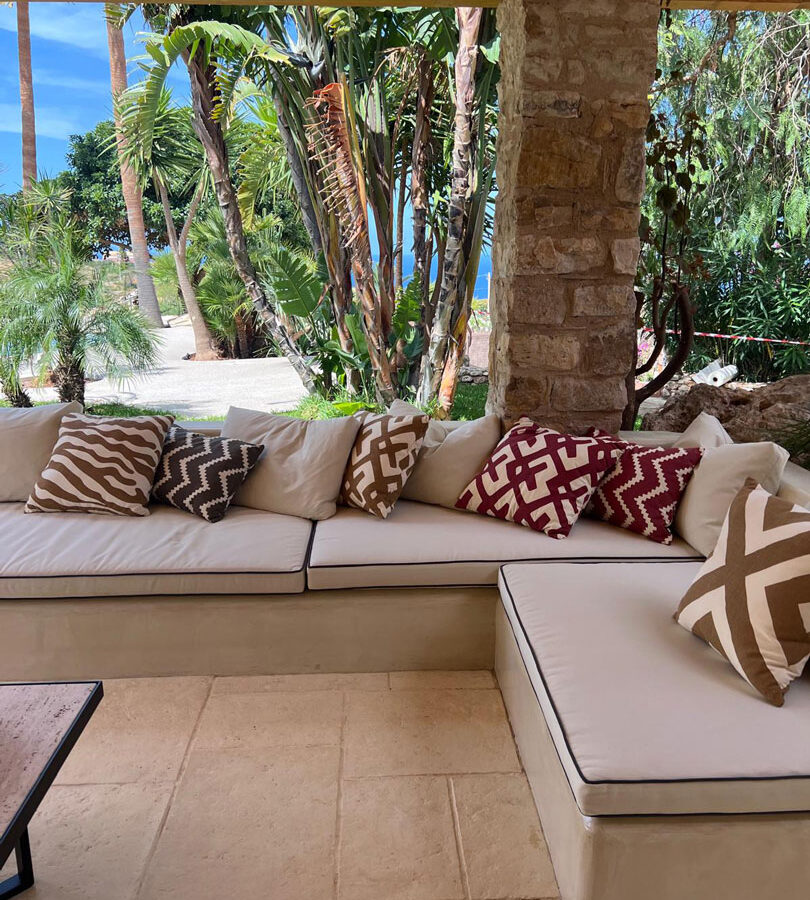All’esterno, ampie verande arredate con sedute in muratura e complementi d’arredo su misura invitano al relax e alla convivialità, offrendo scorci suggestivi sul mare e sulla natura circostante.