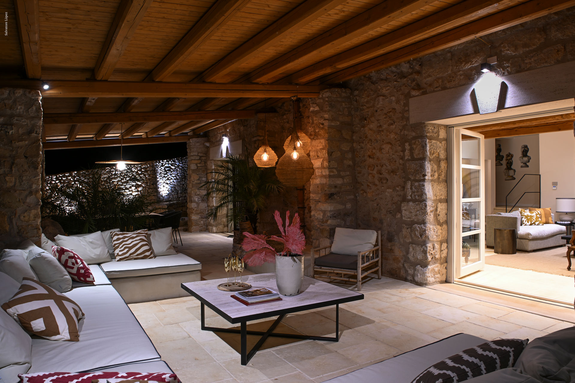 Nel cuore di Scopello, immersa nel verde e affacciata sul mare, sorge Villa Ammalia, un lussuoso rustico in pietra ristrutturato con maestria. La villa conserva le autentiche caratteristiche architettoniche di pietra e legno, reinterpretandole con raffinati tocchi moderni che celebrano l’incontro tra architettura e design contemporaneo.