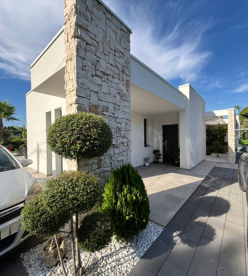 Il progetto di questa villa rappresenta un’espressione pura di architettura contemporanea mediterranea, dove linee essenziali, materiali naturali e luce si fondono in un dialogo armonico tra spazio costruito e paesaggio.