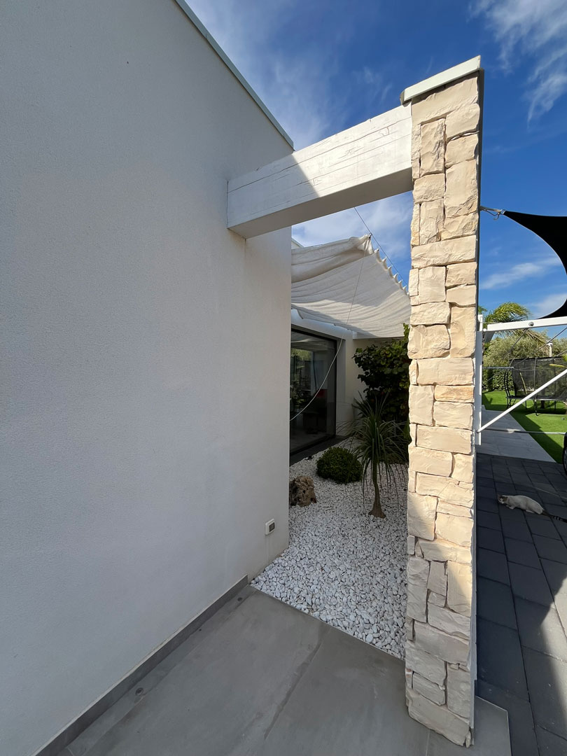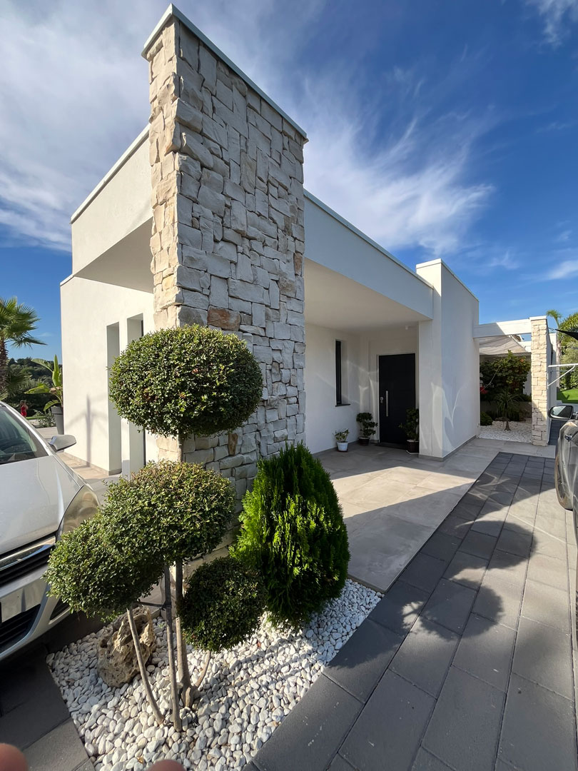 Il progetto di questa villa rappresenta un’espressione pura di architettura contemporanea mediterranea, dove linee essenziali, materiali naturali e luce si fondono in un dialogo armonico tra spazio costruito e paesaggio.